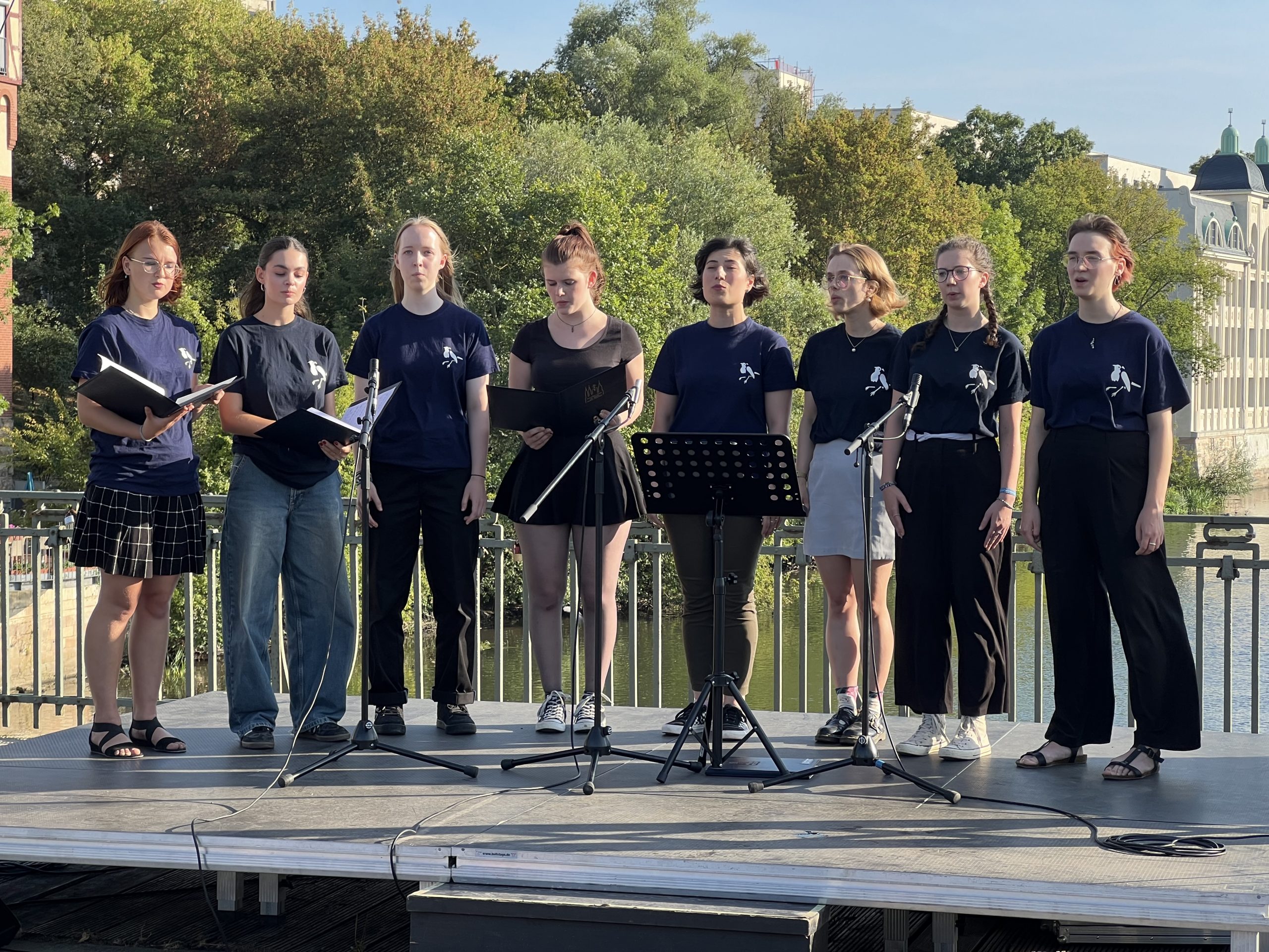 Nach der Sommerpause ging es auch in diesem Jahr mit dem Genzmer Brückenfest freudig weiter. Unser Mädchenensemble und unser Junges Ensemble standen dabei gemeinsam auf der Bühne, um ein kurzes aber bewegendes Konzert zu geben.