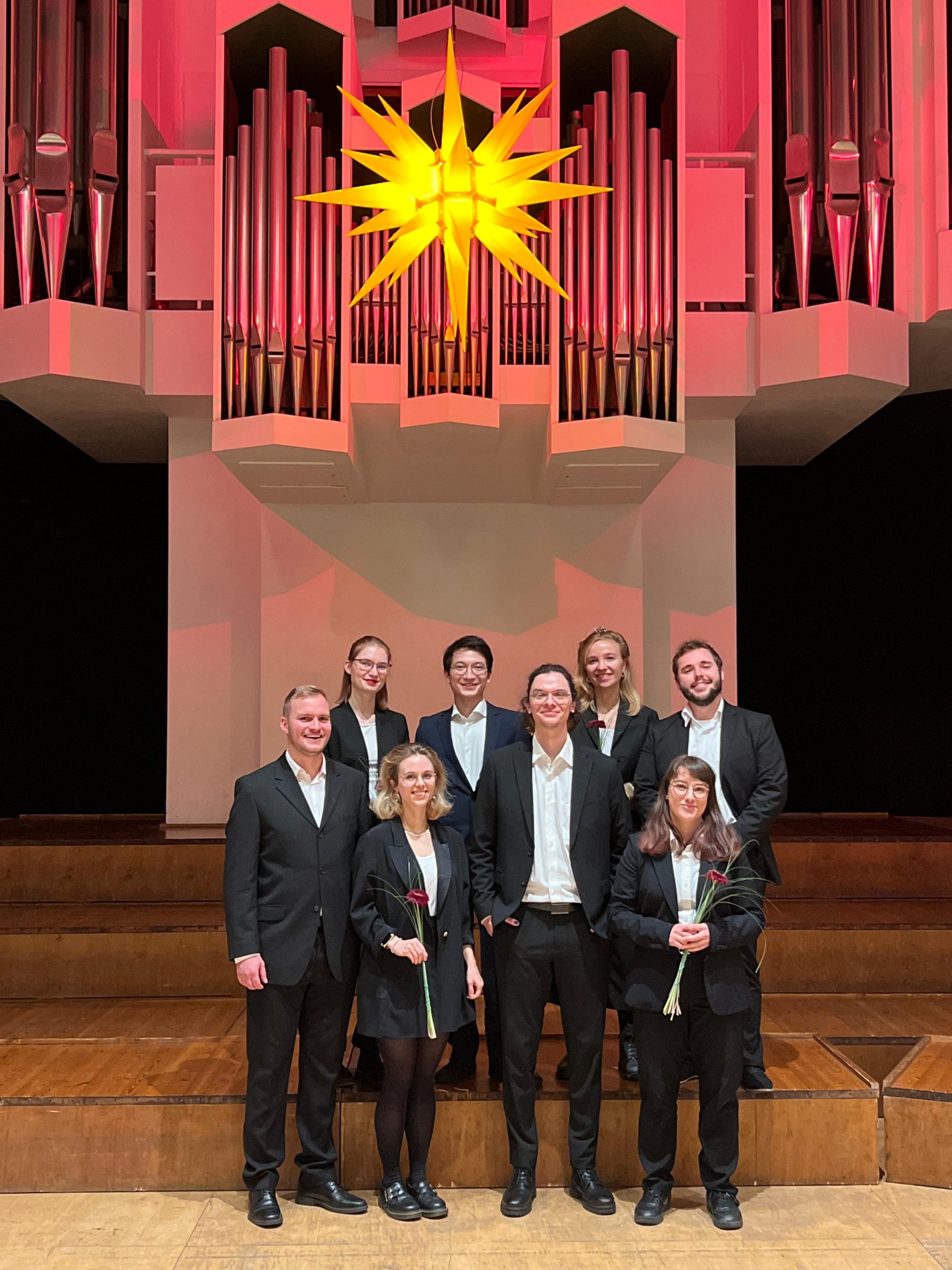 Anfang Dezember stand das erste Weihnachtskonzert des Jungen Ensembles an. Das Hans-Dietrich-Genscher Gymnasium lud zu einem Adventskonzert in der Ulrichskirche ein. In einem abwechslungsreichen Programm präsentierten die Musikklassen 5 bis 9 ihre Weihnachtslieder dem zahlreichen Publikum. Neben Klavierstücken und Solo-Liedern konnte auch unser Junges Ensemble mit drei eigenen Weihnachtsliedern glänzen. Als Höhepunkt sangen alle Sänger:innen gemeinsam zwei Weihnachtslieder und erreichten damit tobenden Applaus vom Publikum.
