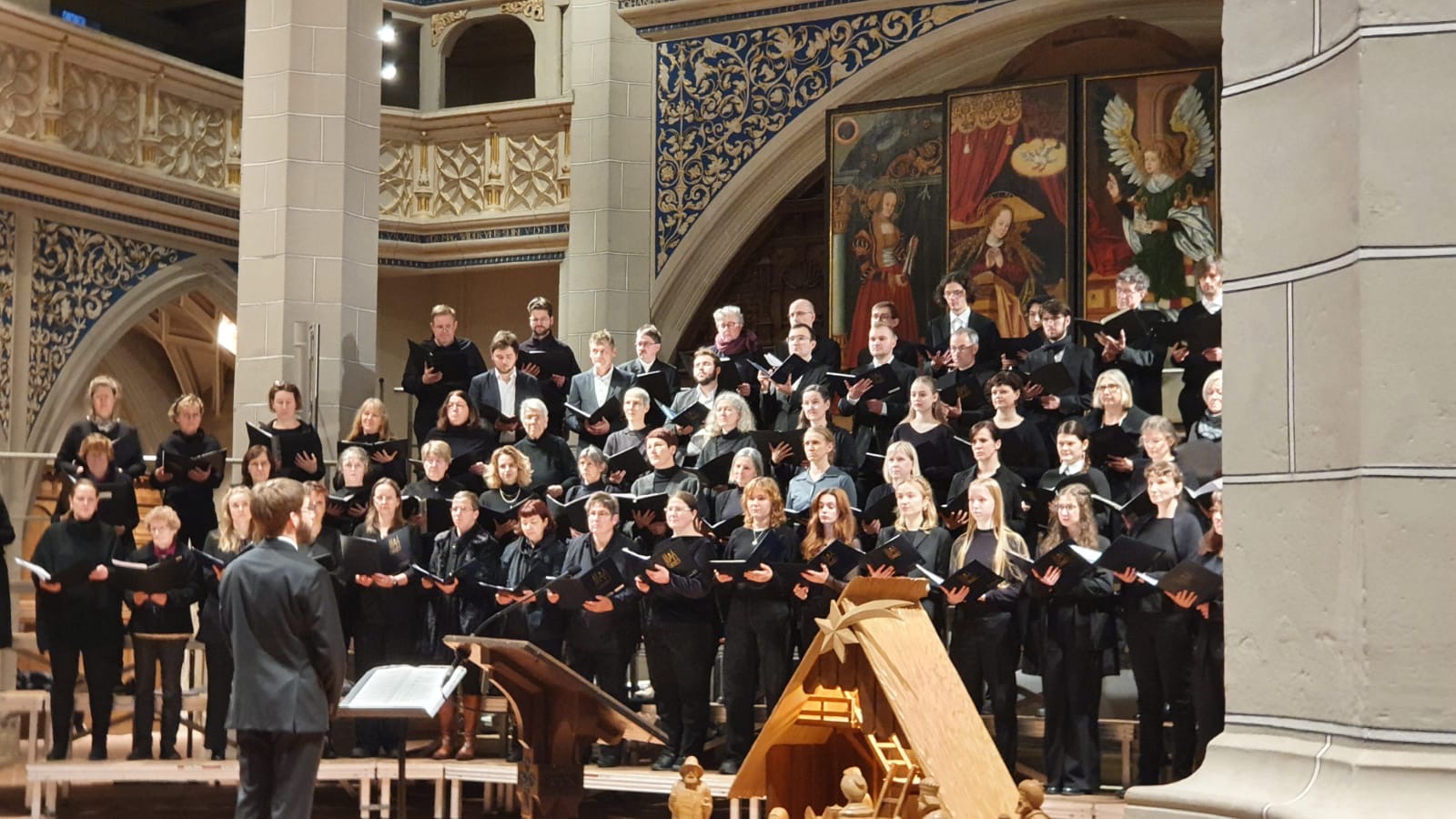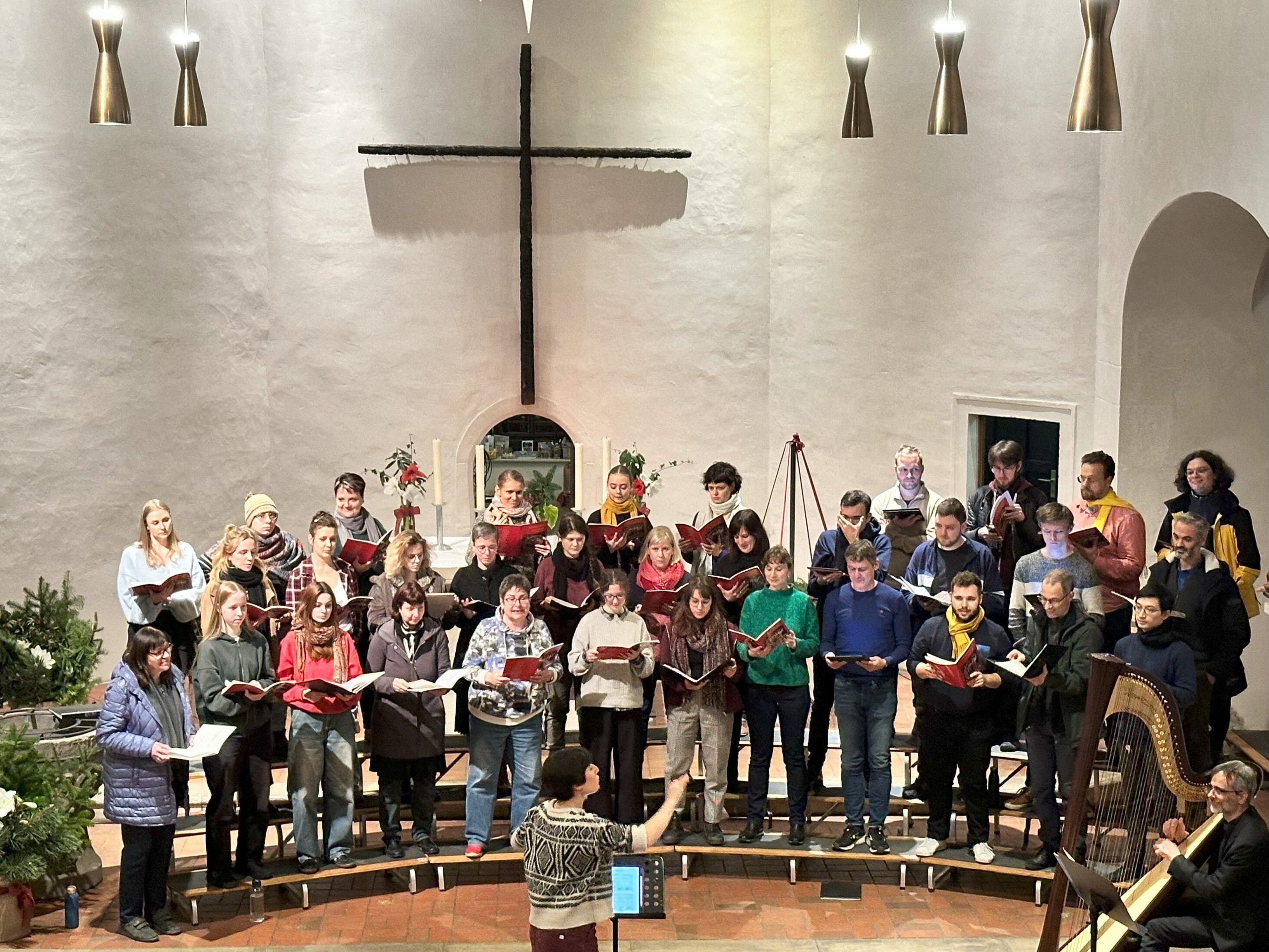 Zum Abschluss des Jahres folgte mit „A Ceremony of Carols“ das große Weihnachtskonzert der Singschule mit dem Kinderchor, dem Mädchenensemble, dem Jungen Ensemble und dem Gemischten Chor in der Laurentiurskirche. Das Publikum der prall gefüllten Kirche konnte zunächst die einzelnen Chöre belauschen, bevor das Highlight „A Ceremony of Carols“ von Benjamin Britten erklang. Andres Wehrenfennig begleitete die Chöre dabei mit wunderbaren Harfenklängen. Das Gemeinschaftskonzert unserer Chöre leitete festlich die Weihnachtsfeiertage ein und bildete einen gelungenen Abschluss für alle Sänger:innen und ihr Publikum.