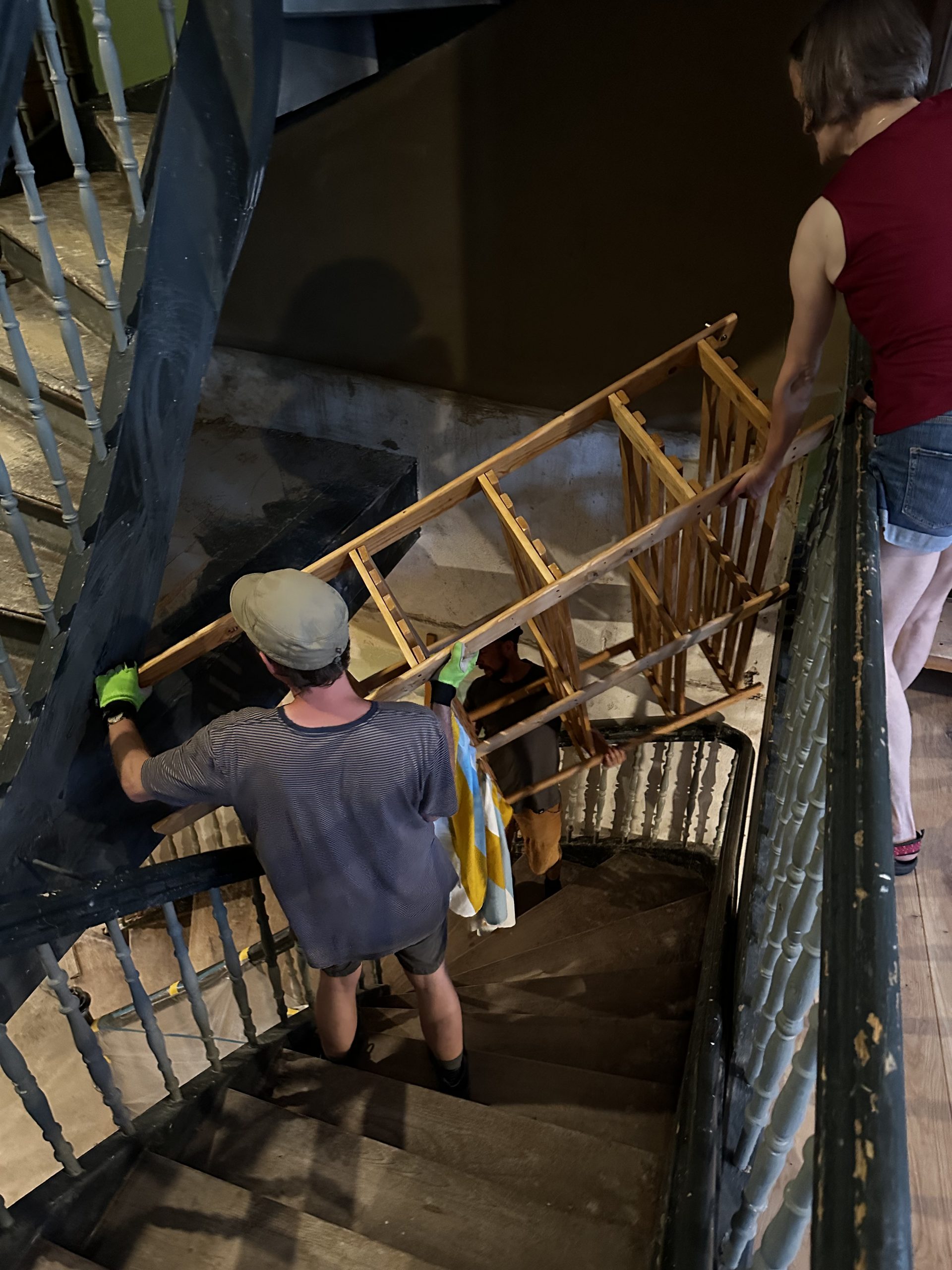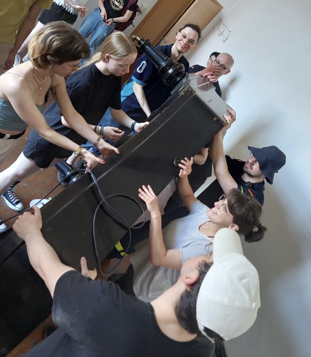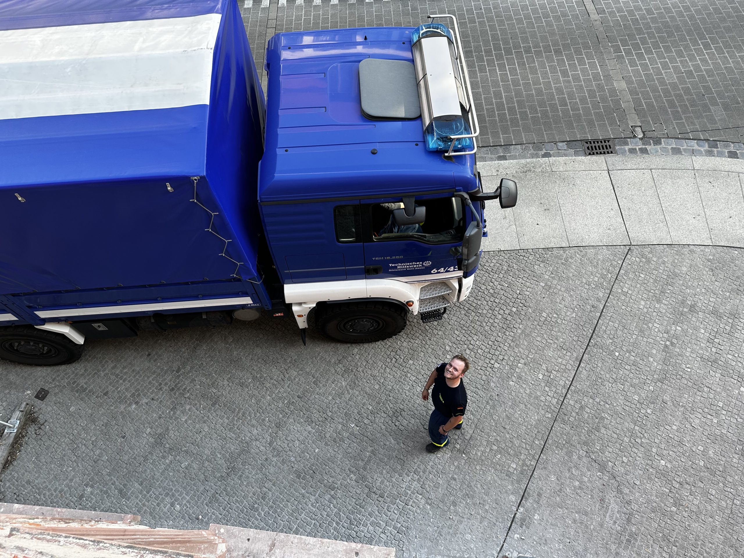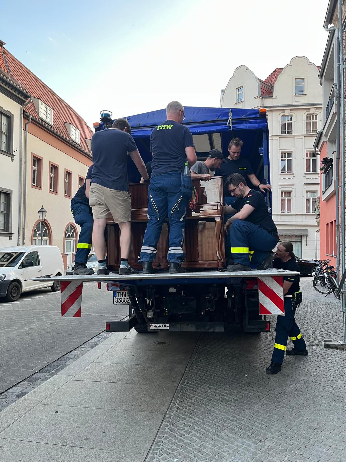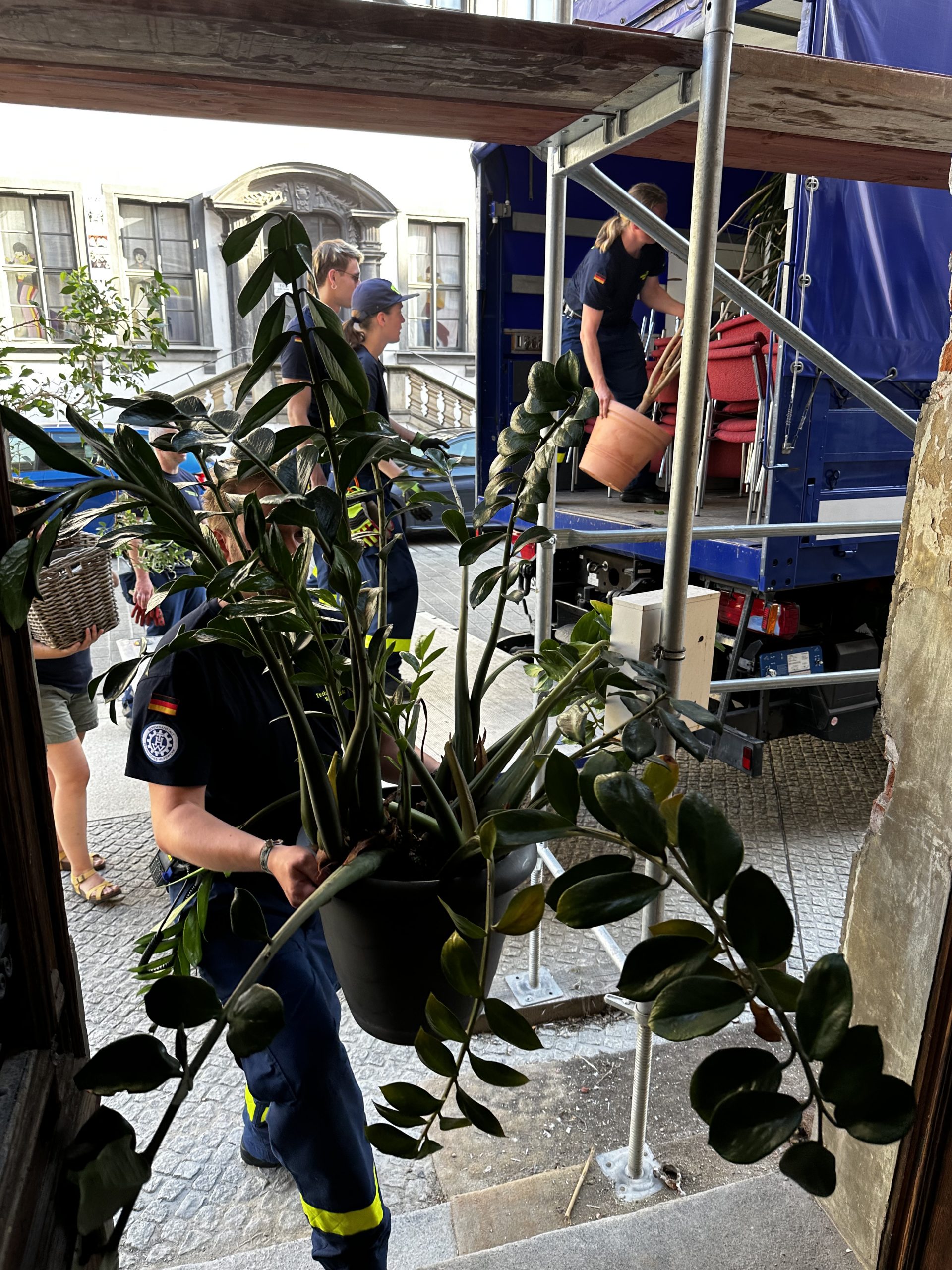 Bevor sich alle in den wohlverdienten Sommerurlaub verabschiedeten, stand Ende Juni noch unser großer Umzug in die hallesche Innenstadt an. Dank der großartigen Unterstützung des Technischen Hilfswerks aus dem Ortsverband Halle (Saale), das uns nicht nur einen LKW zur Verfügung stellte, sondern auch tatkräftig mit anpackte, konnten wir unsere gesamte Ausstattung — darunter Möbel, Musikinstrumente und alles, was wir für unsere Proben brauchen — in den Goldenen Pflug am Alten Markt 27, direkt am Eselsbrunnen, bringen.
