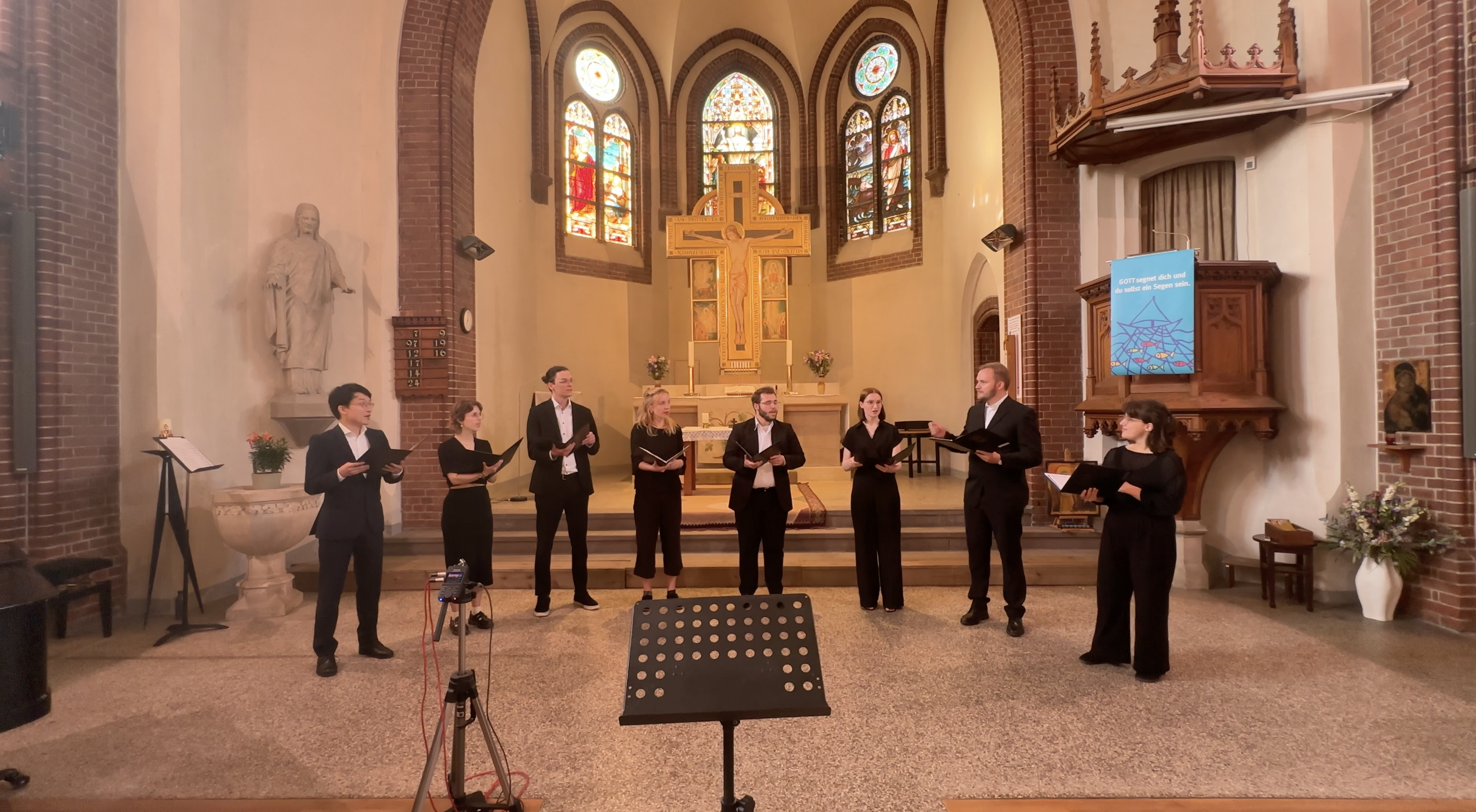 Im Juni entführte der Gemischte Chor, das Mädchenensemble sowie das Ensemble N8igall das Publikum in die Straßen von Paris mit einem Programm aus französischer Chormusik mit Werken von Duruflé, Fauré, Ravel, Debussy und Poulenc. Eine kleine Zeitreise Reise durch Frankreich ganz ohne Kofferpacken gelang auch durch einzelne Solostücke sowie Duette von Sängerinnen und Sängern unseres Gemischten Chores. Durch die kleinen Gassen Frankreichs erklungen auch die süßen Klänge einer Geige sowie das temperamentvolle Spiel des Klaviers.