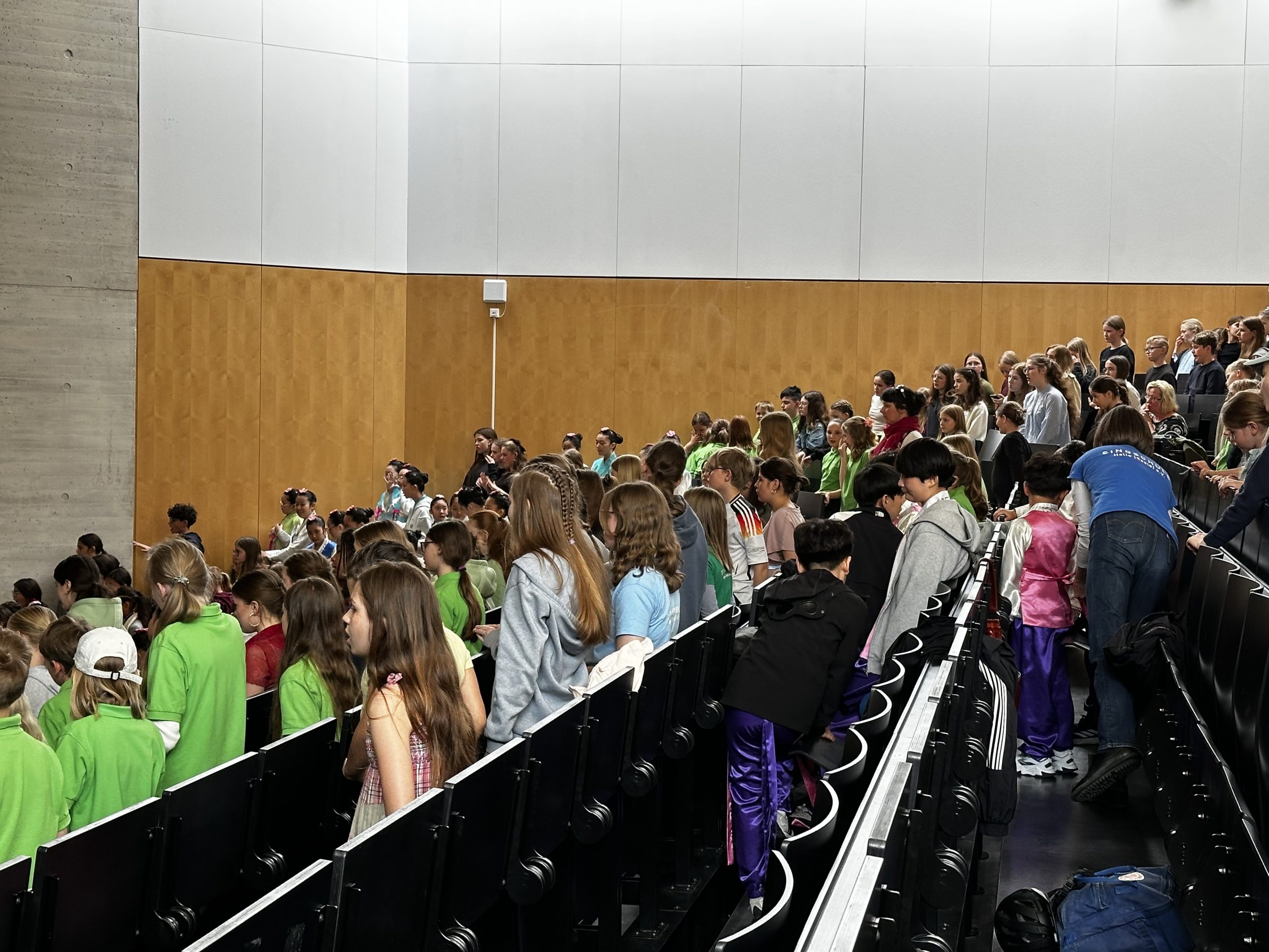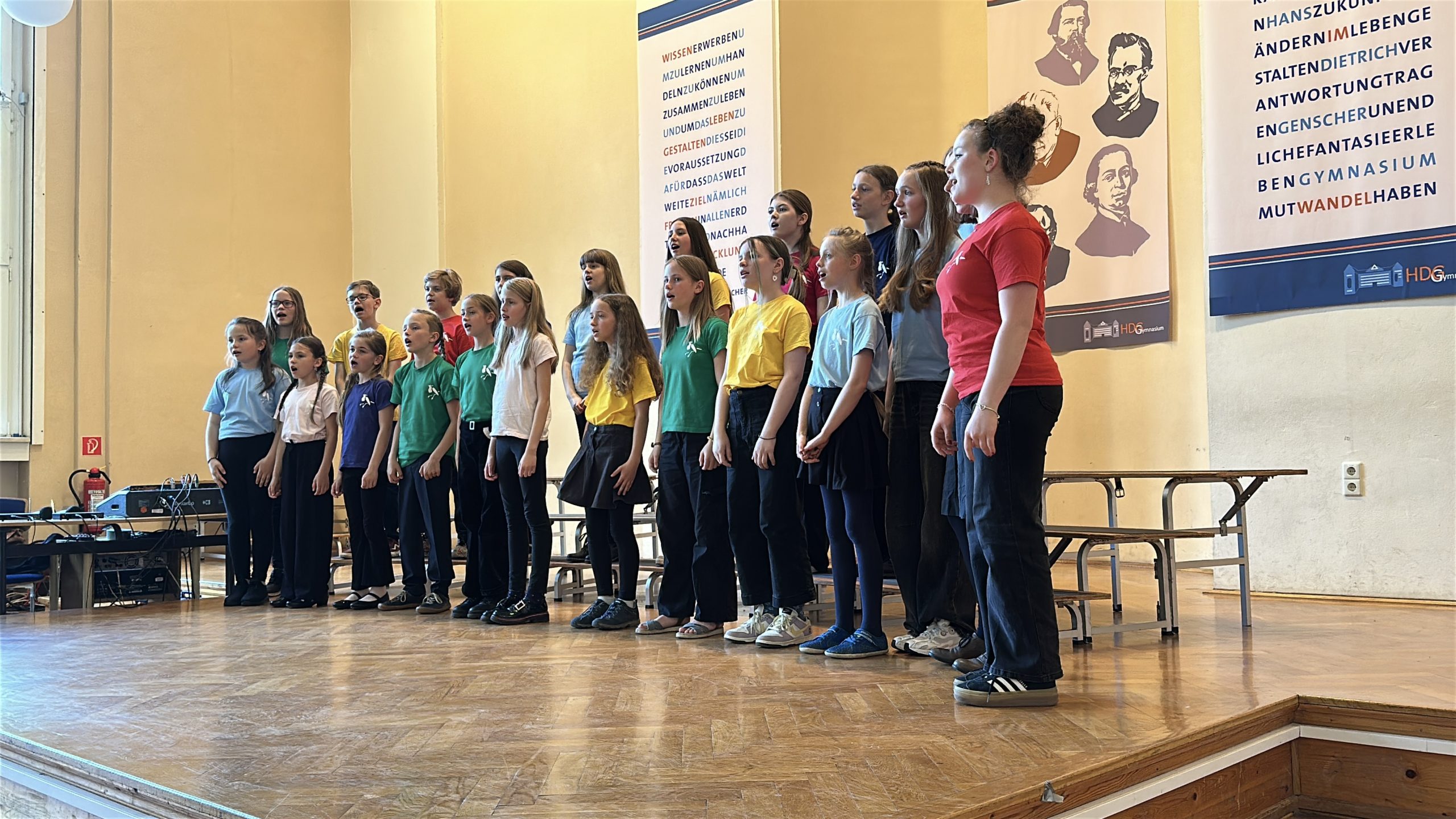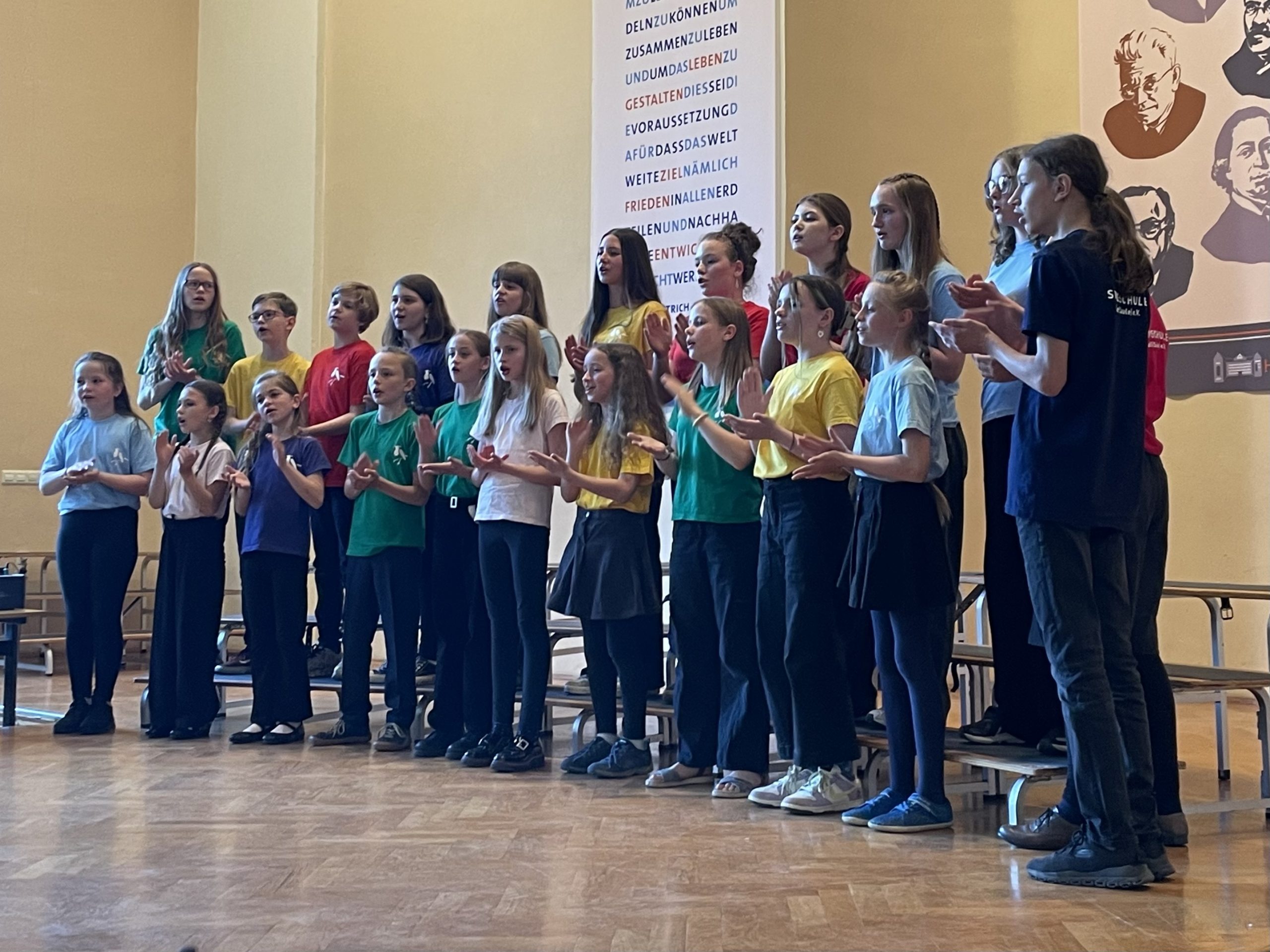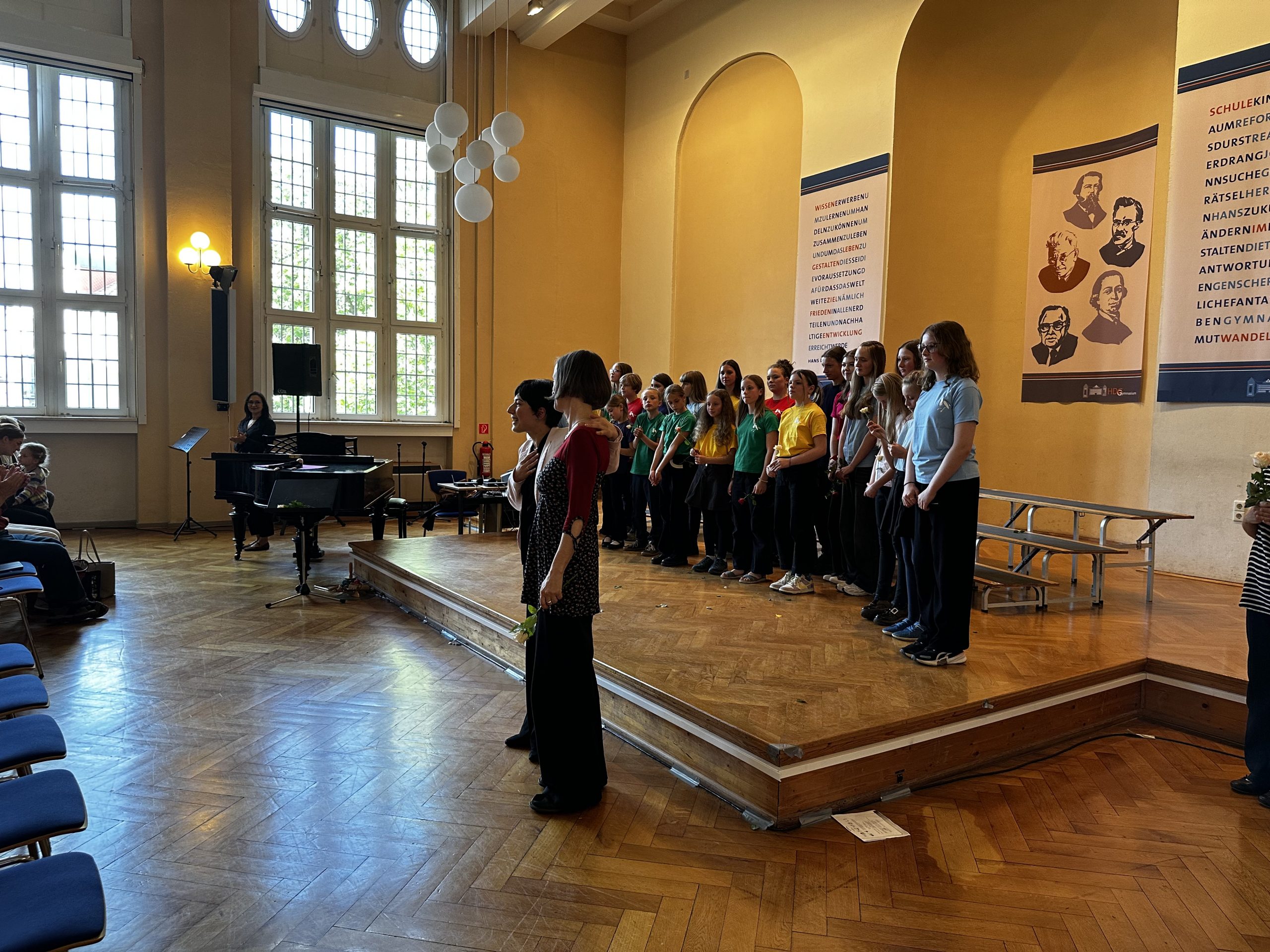 Wie in jedem Jahr feierten wir auch in diesem all unsere Mütter, Großmütter und Mutterfiguren bei einem bewegenden Konzert der Musikalischen Früherziehung, der Singklasse und des Kinderchores. Neben Liedern zum Muttertag glänzten unsere Sänger:innen in diesem auch mit einer Klanggeschichte oder Liedern aus Musicals. In der vollbesetzten Aula des Genscher Gymnasiums hörte das Publikum ein rundum gelungenes Konzert mit viel Abwechslung und hinterließ das Publikum mit freudiger Stimmung in den Abend.