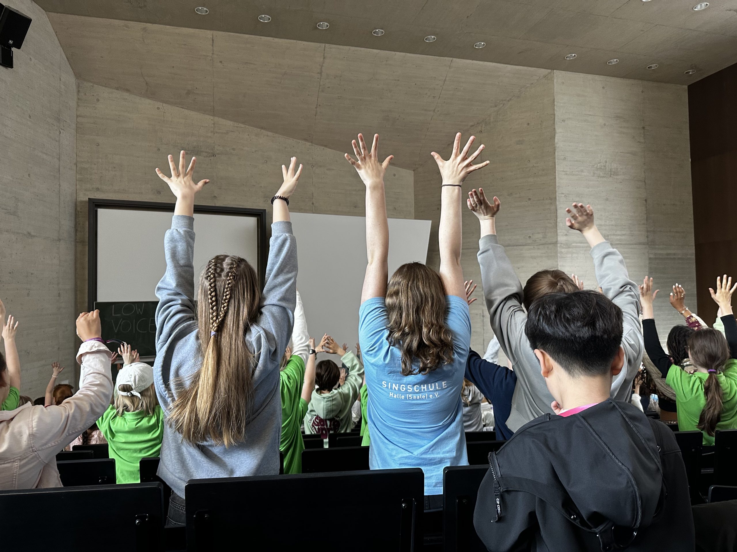 Unser Kinderchor trat gemeinsam mit der Kindersingakademie und vielen weiteren nationalen sowie internationen Chören beim diesjähringen OpenAir Konzert des Internationalen Kinderchorfestivals auf. Besonders die Probe im AudiMax der Martin-Luther-Universtät hinterließ großen Eindruck bei unseren Sänger:innen. So erlebten sie, wie es sich anfühlt, wenn ein anderer Dirigent oder eine andere Dirigentin das Einsingen sowie die Gestaltung der Lieder übernimmt. Auch der große Klang der vielen jungen Sänger:innen, der den Hörsaal erfüllte, versetzte uns in großes Staunen und euphorische Stimmung. Das anschließende Konzert auf dem Marktplatz erfreute das Publikum durch die abwechslungsreichen Auftritte der Chöre.