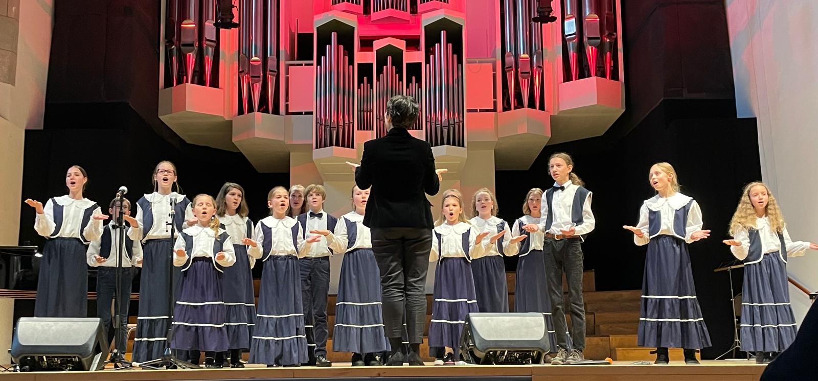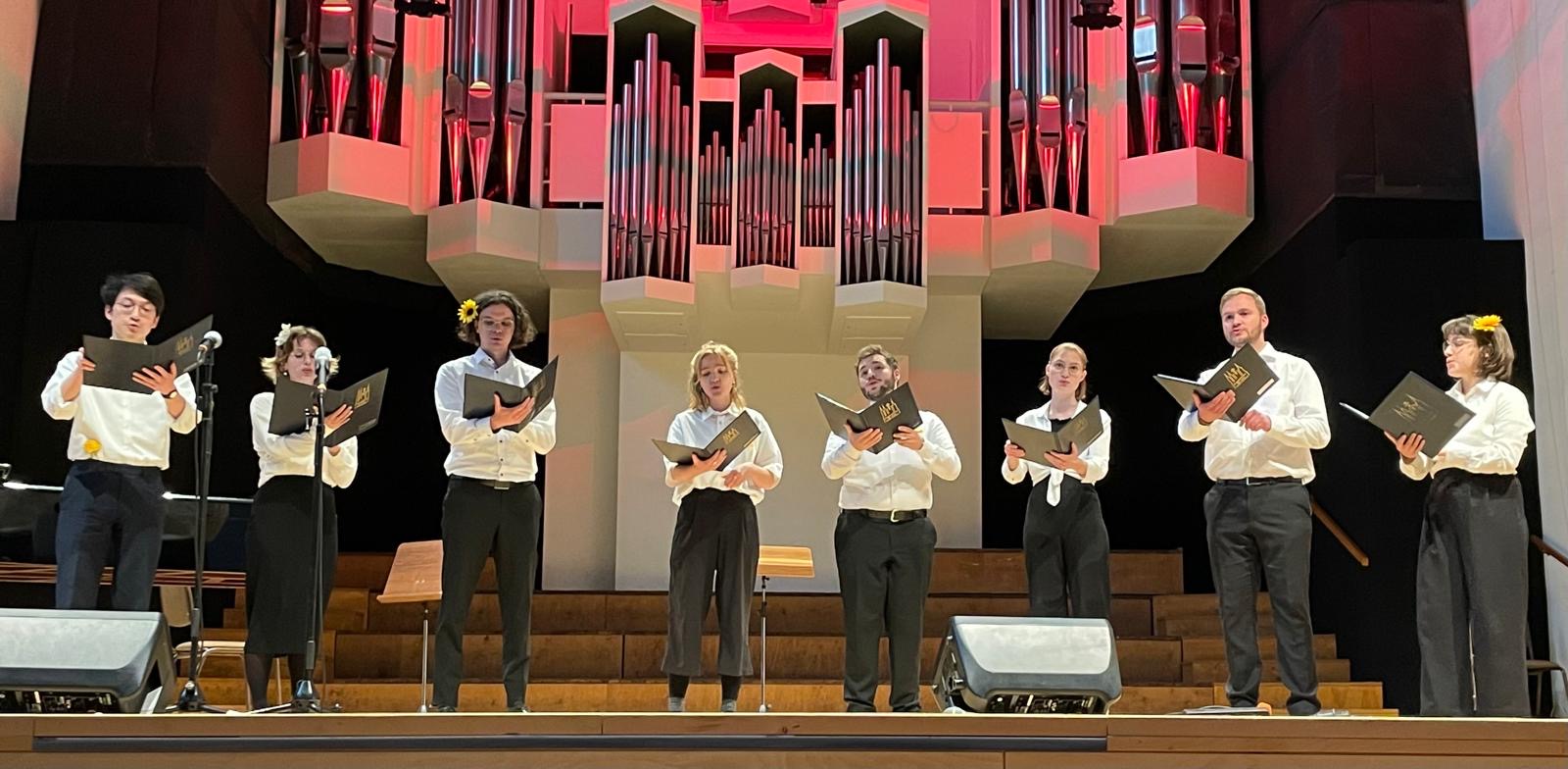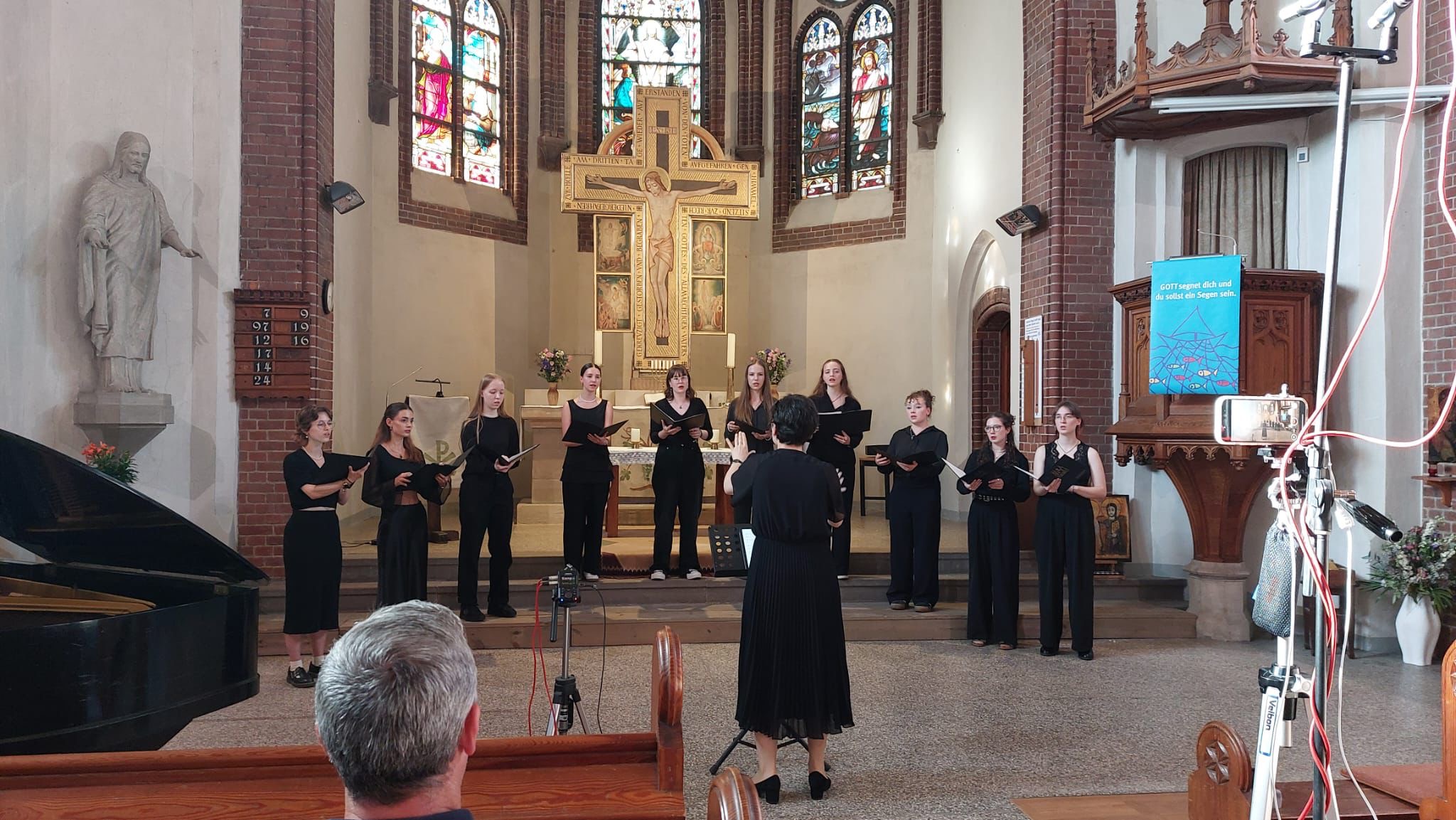 Dieses Konzert zählt schon fast zur Tradition unserer Singschule. Auch 2025 nahmen unser Mädchenensemble und das Ensemble N8igall am Gemeinschaftskonzertes des Chorverbandes Giebichensteins gemeinsam mit anderen halleschen Chören und Chören aus der Umgebung teil. Unsere Ensembles nahmen das Publikum mit auf eine kleine Frühlingsreise über die duftenden Wiesen auf denen die ersten Bienen summen. Das Mädchenensemble gab schon einen kleinen Vorgeschmack auf unser Konzert mit französischer Chormusik im Juni und führte das Publikum anschließend in die Provence. Um unsere kleine kulturelle Frühlingsreise abzuschließen sangen das Mädchenendemble und das Ensemble N8igall zum Schluss ganz traditionell ein georgisches Lied. Dieses Konzert war wie immer eine gute Möglichkeiten andere Chöre kennenzulernen und neue Freundschaften zu schließen.